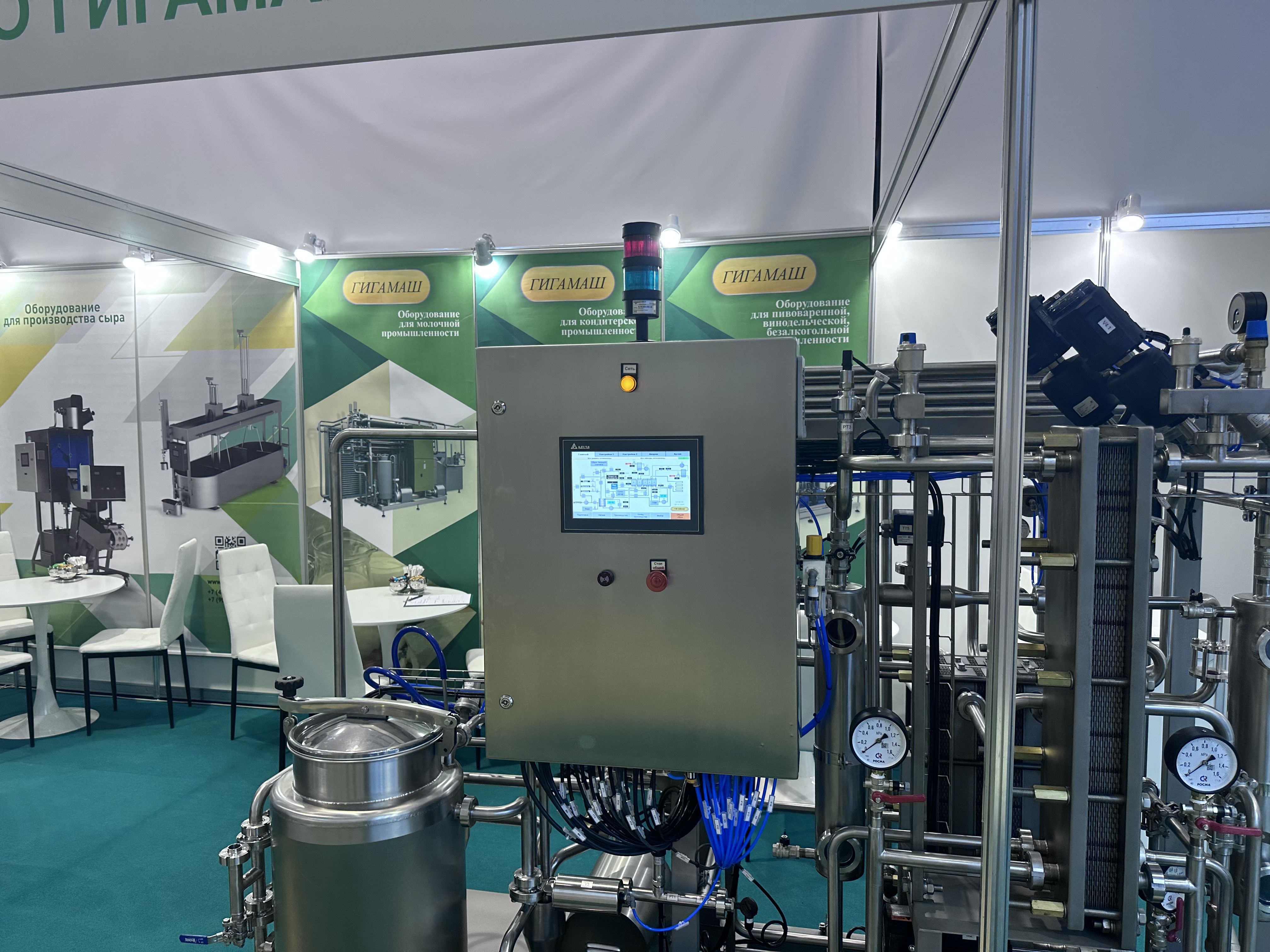 Пример применения светосигнальной колонны INNOCONT серии TL70 на пастеризационно-охладительной установке