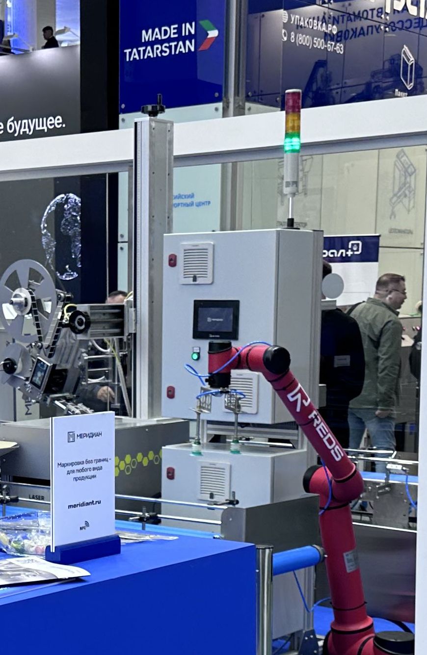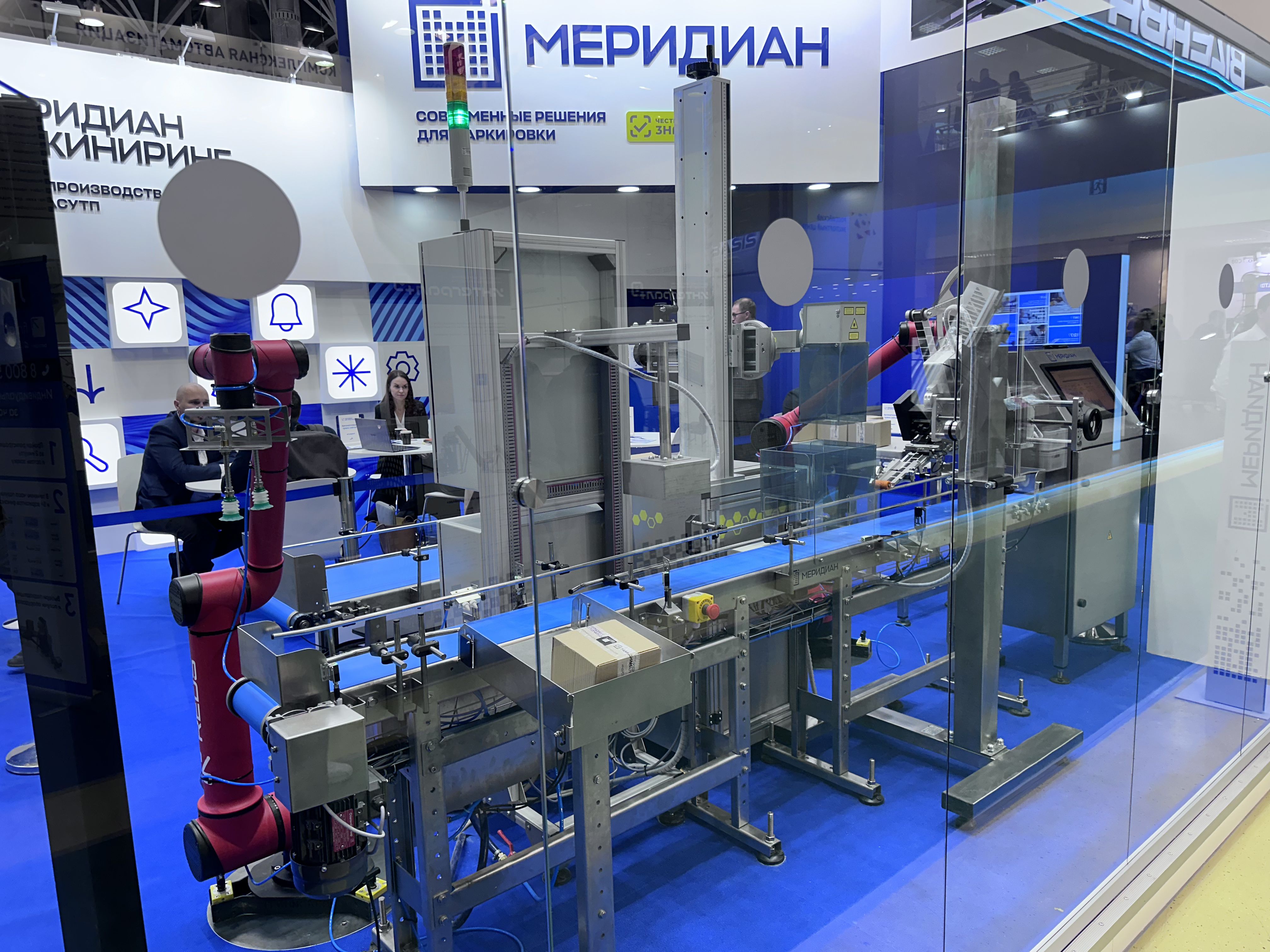 Пример применения светосигнальной колонны INNOCONT серии TL56B в системе автоматической маркировки и укладки упакованной продукции
