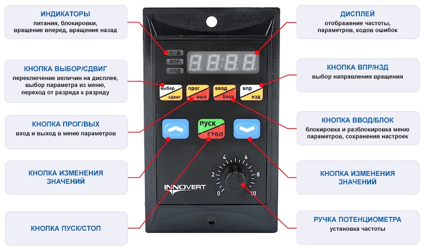 - работает со всеми типами ПЧ INNOVERT,
